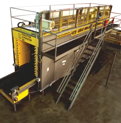 Production Automation, Inc., the industry’s leading manufacturer of economical, high speed, continuous motion,in-line palletizers — presents the SERIES 2500! The SERIES 2500 Palletizer can handle a wide range of case sizes including unsupported shrink-wrap cases at speed range of 25 cases per minute.